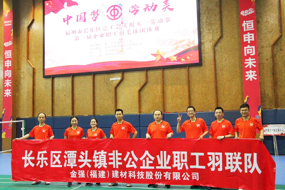 五一节即将来临,为了致敬最美劳动者,4月22日,福州市长乐区总工会主办开展了以“中国梦·劳动美”为主题的职工羽毛球团体赛。金强(福建)建材科技股份有限公司代表队作为八大参赛队伍之一,在当天的比赛中展现风采!