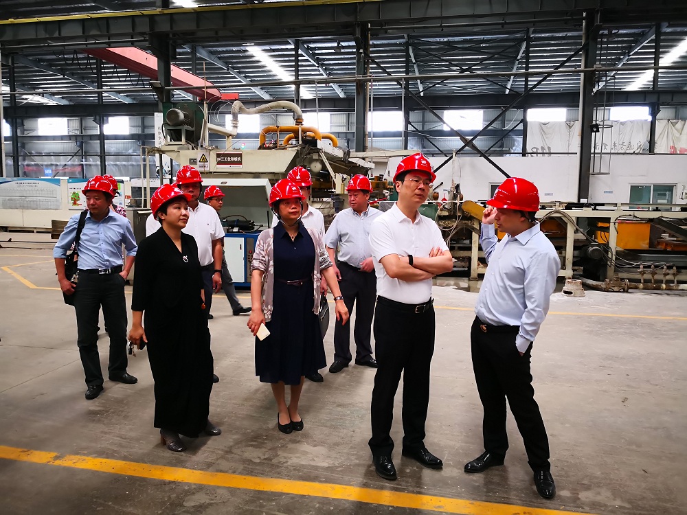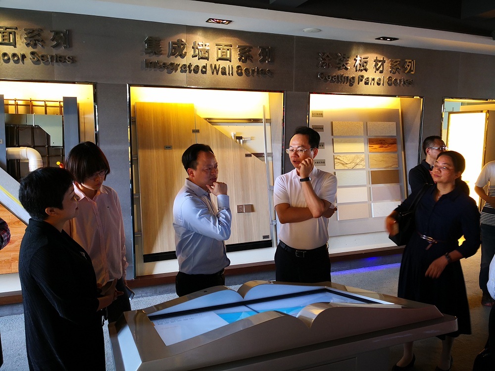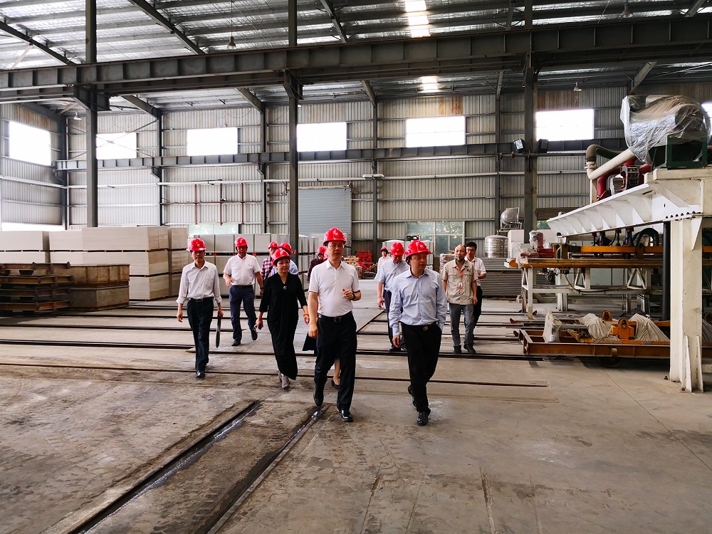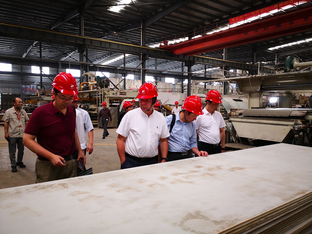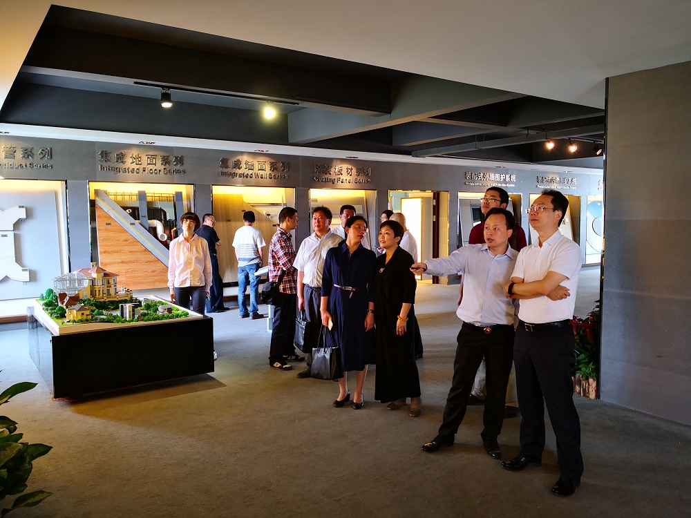 郭学军副主任一行首先到首批国家装配建筑产业园-金强装配建筑产业园的绿色板材生产线考察。刘金铃董事长结合目前国内外新型绿色建材产品的特点,向来访领导介绍了金强先进的智能化生产系统及相关产品特点、工艺等情况。