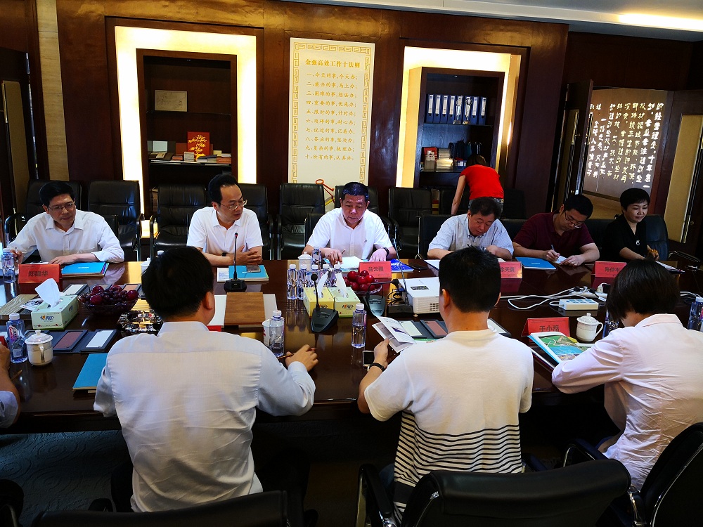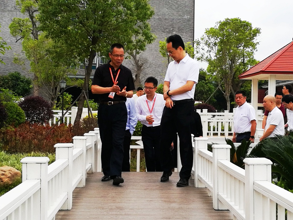 2018年5月9日,福建省经信委副主任郭学军,率省散装办主任余天寅、省新材办主任林苹苹、福州市经信委处长蔡东升等负责人,莅临金强(福建)建材科技股份有限公司调研新型绿色建材的发展情况。金强控股集团刘金铃董事长、知识产权中心王爱群总监、金强建材科技徐定丰副总经理等公司领导接待和陪同调研。
