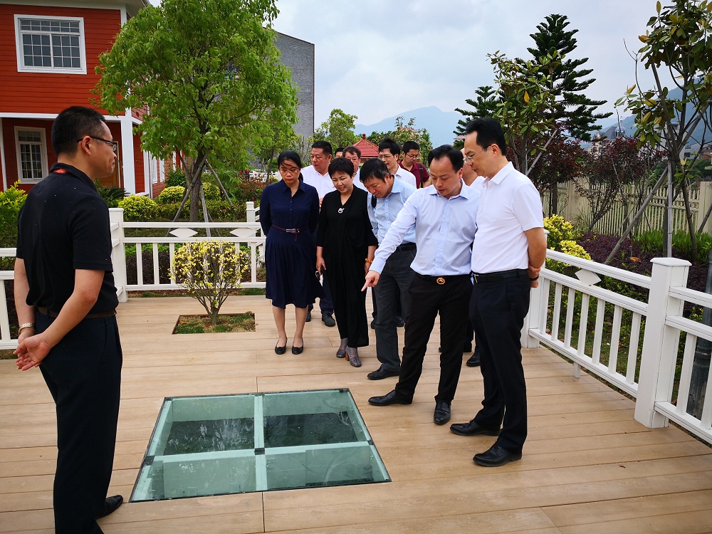 随后,察看了金强板材公园及金强轻钢别墅,公园内的栈道、凉亭、花架、花箱、椅凳等全部采用金强TKK板材建造。金强建材科技总经理助理兼技术总监朱晓阳,向来访领导介绍了金强TKK板材在福州市园林景观建设中的广泛应用及特点。在运用金强装配式钢结构技术体系建造的金强轻钢别墅内,领导一行通过实地考察和技术人员的详细解说,对金强在装配式建筑领域的技术创新及应用有了更深的了解。