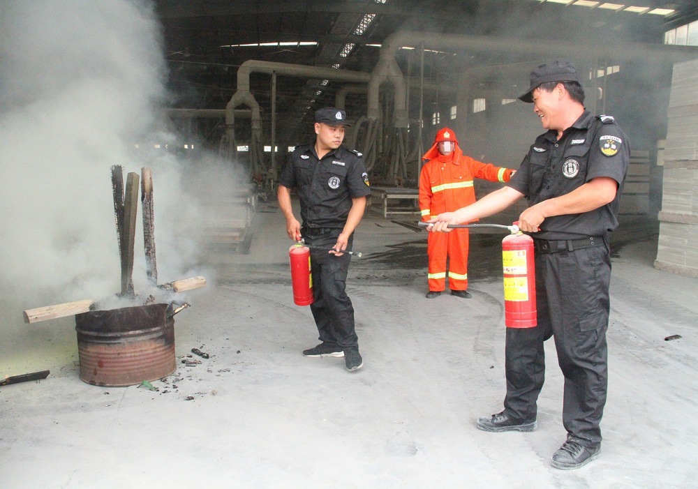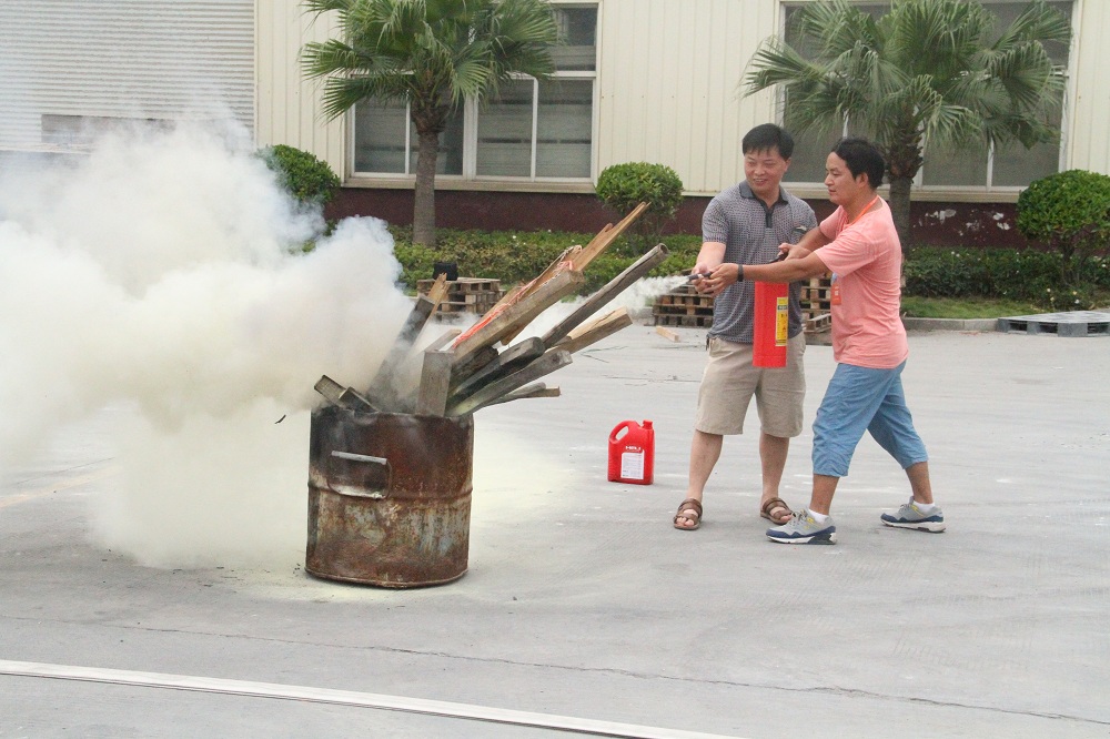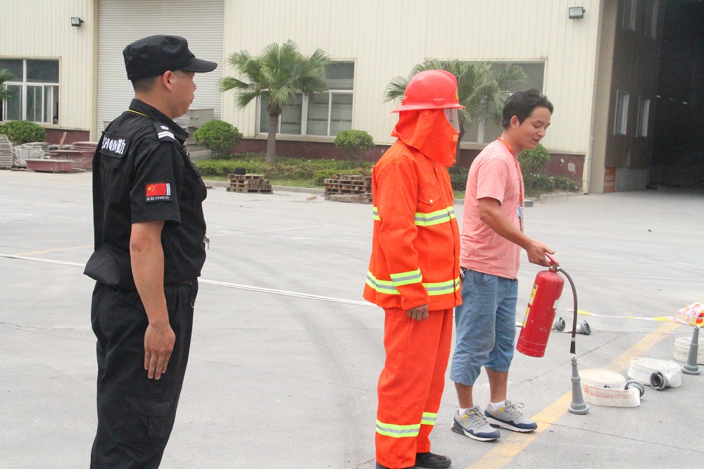 本次演练共有四大方面内容:1、火情报警注意事项; 2、连接室外消防给水灭火;3、车间遇到火灾事故的疏散演练;4、灭火器扑灭初期火灾。在正式演练前,公司安全员及安保人员首先讲解示范了灭火器、消防栓、高压水带等灭火器具的使用技巧。
