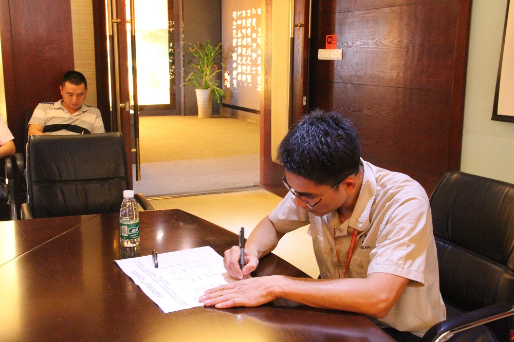 会议最后,与会代表们均庄重地在承诺书上签字,表示将共同努力推动公司精益项目,让金强建材科技展现更多的活力,持续健康良好地发展。