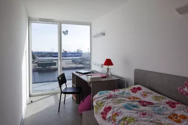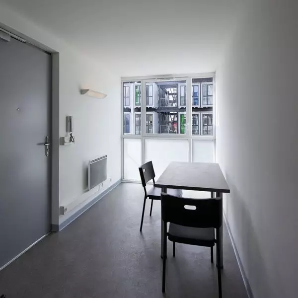 为了确保最大的隔热和隔音效果,外墙相邻的容器和用来划分不同单元的容器涂有40厘米厚的钢筋混泥土防火墙。与此同时,合成橡胶层具有防震功能。在内部,设计师选择了白色的墙壁和木制家具。每个工作室都附有一个浴室、厨房和免费的无线上网设备。这座能够容纳100个套间的四层建筑,每个套间的面积是24平米。