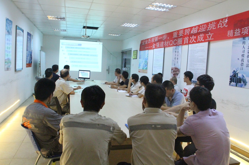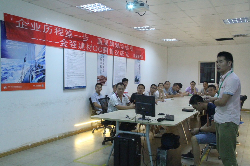 金强建材首个QCC的正式成立标志着金强建材精益项目进入新的阶段。金强建材精益项目自今年6月30日启动以来,7月份至今持续开展了一共20次精益项目系列培训。其中7月份共9次,8月份共10次。9月截止目前1次。