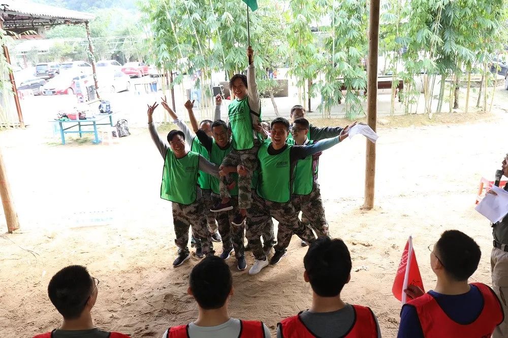 除了学习企业文化外,在拓展训练中,增强团队凝聚力的训练目标也是活动的重中之重。此次拓展训练将全体学员分为红队“锋光队”和绿队“亮剑”两支队伍。不仅在每个项目中都设计了团队协作的环节,在游戏中通过团队的共同商讨,完成任务,为团队争夺荣誉。更专门设置了“篝火晚会、鼓动人心、团队巨画”等以团队合作为主要环节的,体现团队凝聚力的训练项目。