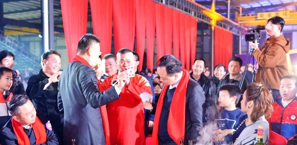 当晚的节目精彩纷呈,高管TIME SHOW、激情合唱、光屏互动舞蹈、杂技空中敬酒、京剧唱段演唱、魔术脱口秀等等共同汇筑一个有趣、激情的金强盛典。
