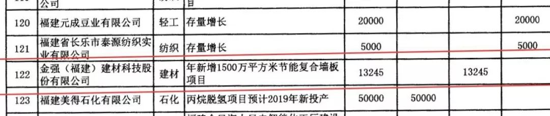 《福建省2019省级工业新增长点项目名单》是在各设区市、平潭综合实验区工信部门上报的基础上,经省工信厅研究,最终确定的2019年省级工业新增长点项目632项(预计新增工业总产值1421.97亿元)。其中,福州市200项、预计新增产值(下同)2810375万元,厦门市21项、374000万元,漳州市63项、3030200万元,泉州市45项、1008868万元,三明市99项、908000万元,莆田市70项、1066100万元,南平市53项、368200万元,龙岩市30项、963000万元,宁德市49项、3680000万元,平潭2项、11000万元。在福州市200项新增长项目中建材行业仅8项,金强建材科技的“年新增1500万平方米节能复合墙板项目”为其中之一,预计新增产值13245万元。