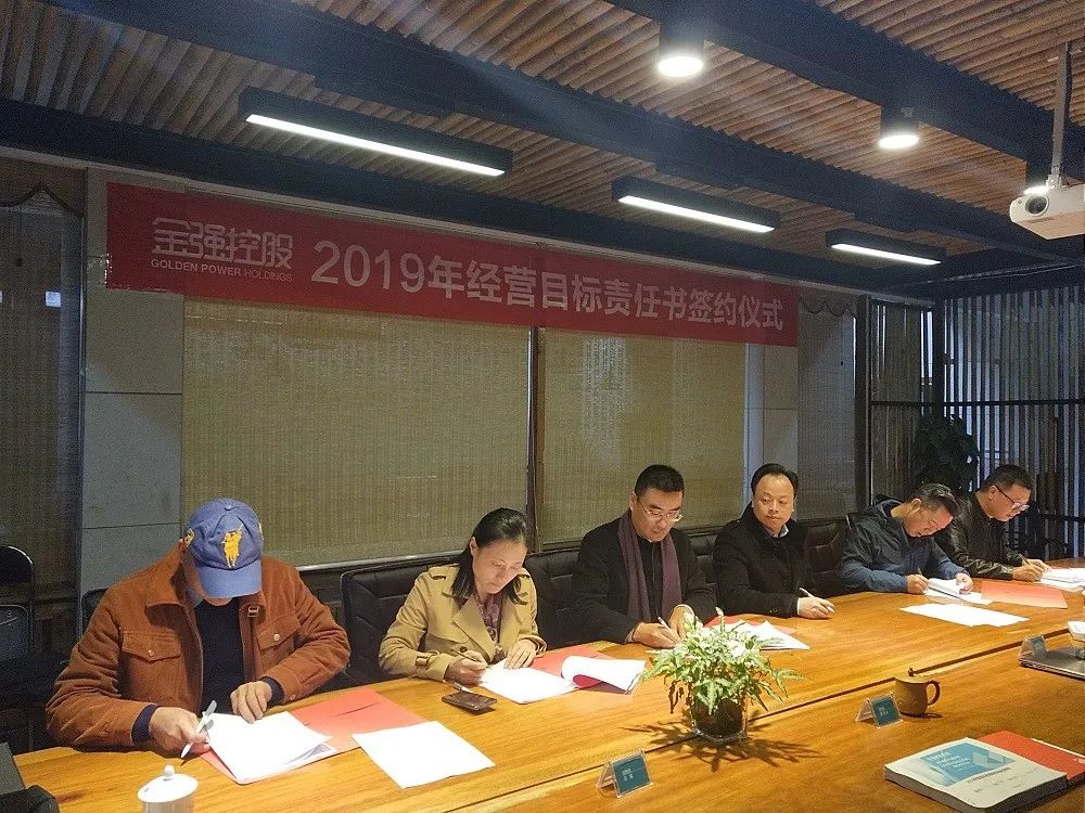 这是金强控股集团首次举行经营目标的责任书签约仪式。目的是希望通过举办签约仪式,将2019年工作通过目标责任书的形式确定下来,让各中心和各子公司更加明确自身工作的责任和压力,增强大家的执行意识、责任意识,统一思想,提高认识,理清思路,推动各项工作在新的一年里再上新台阶。
