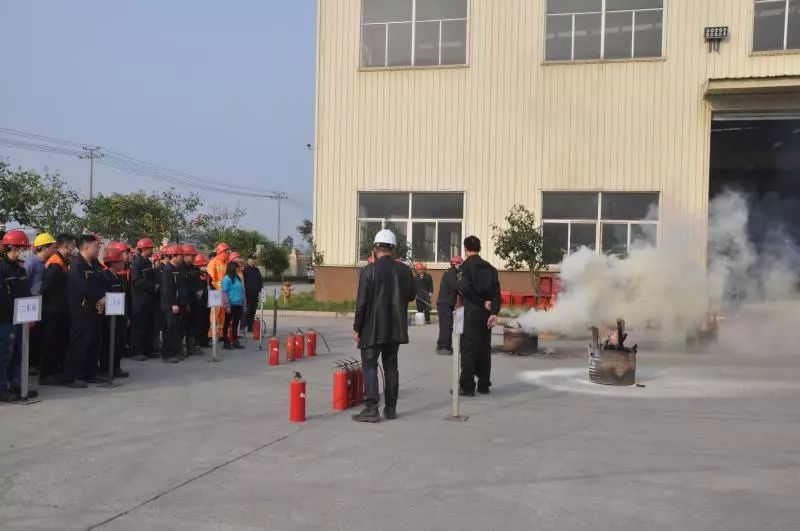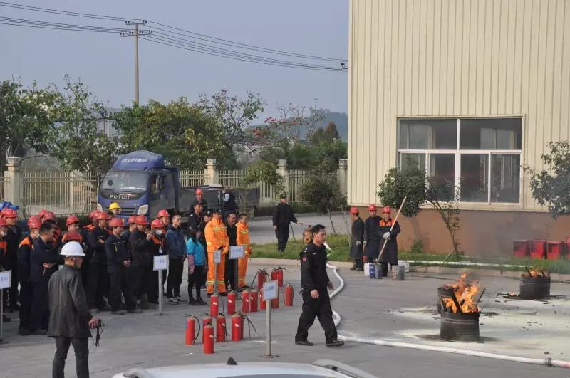 随后,由保安队长重点讲解示范了灭火器、消防栓、高压水带等灭火器具的使用技巧,并指导各车间员工利用不同类型的灭火器进行模拟灭火演练。