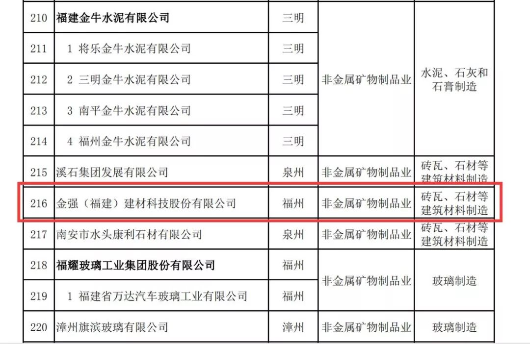 热烈祝贺金强建材荣膺2019福建省工业和信息化省级龙头企业!