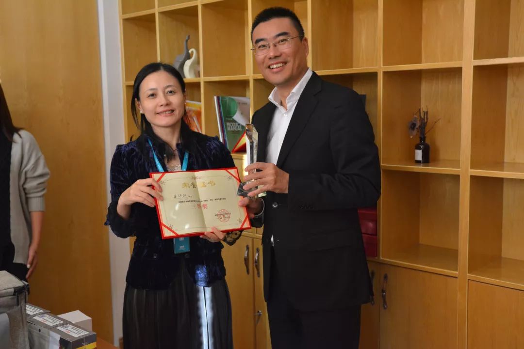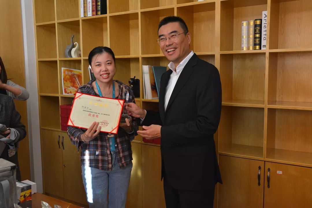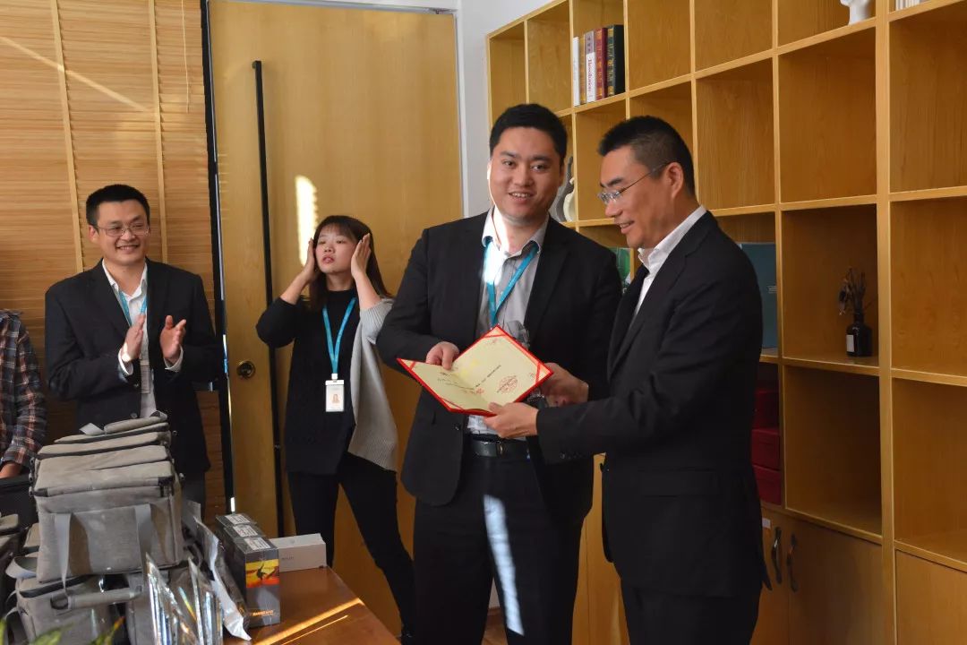 11月14日,金强控股集团2019年金强杯“遇见•美好”摄影比赛落下帷幕,集团总裁翁斌为获奖选手颁发荣誉证书、奖杯及奖品。