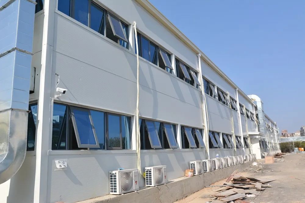 继2月6日,福清市医院新感染病区一期正式启用后,经过近二十天的紧张建设,福清市医院新感染病区二期也建设完成。项目采用金强装配式模块化房屋建设,通过工厂预制单元模块,然后运输至现场装配,具有部品部件质量高、可干法施工,现场可多工种交叉作业,可大大缩短工期等特点。 该病区虽是作为临时应急抢险项目,但是严格按照永久性建设标准,采取“三分区两缓冲”模式,设置清洁区、潜在污染区、污染区,在清洁区与潜在污染区之间、潜在污染区与污染区之间,分别设置1个缓冲区,有效切断了区内病毒传播渠道。