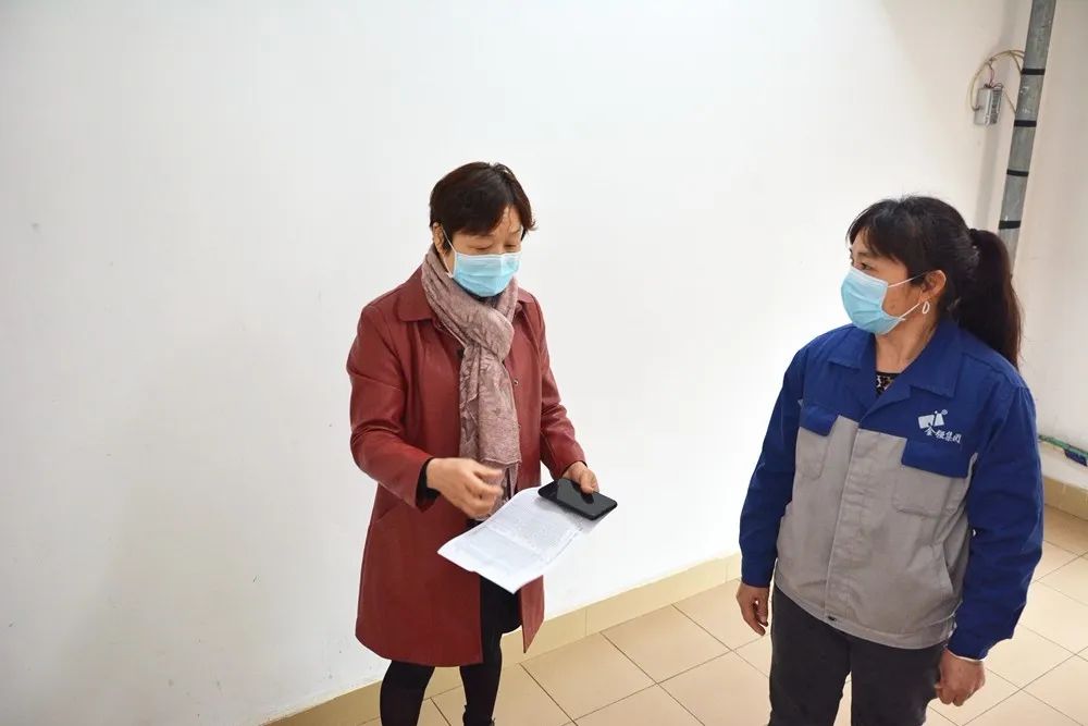 ▲张琼英(左一)交代疫情防控工作中的注意事项