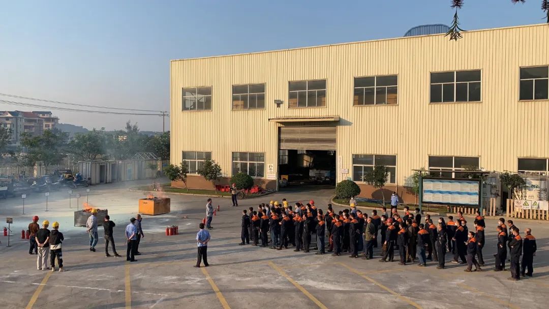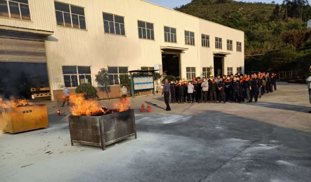 当天下午,在金强装配建筑产业园钢结构厂房前,各项演习物资摆放到位,事业部全体员工列队学习消防知识,内容包括火灾防范意识,火灾案例、火灾特点、火灾逃生技巧、消防器材使用注意事项等。