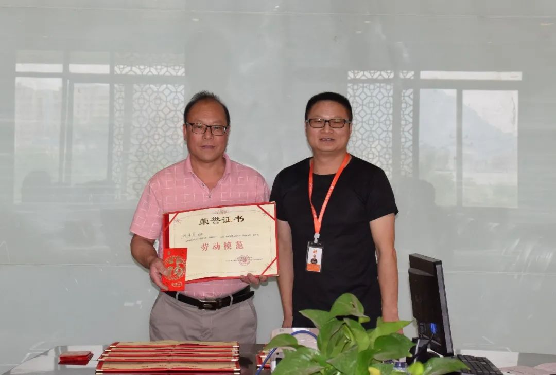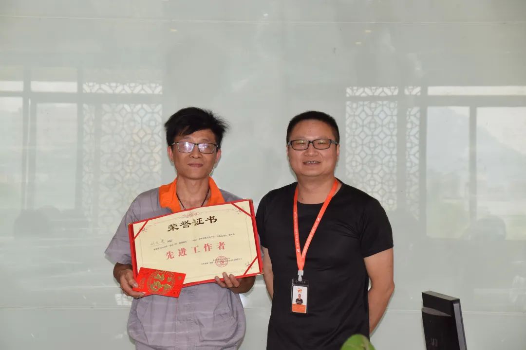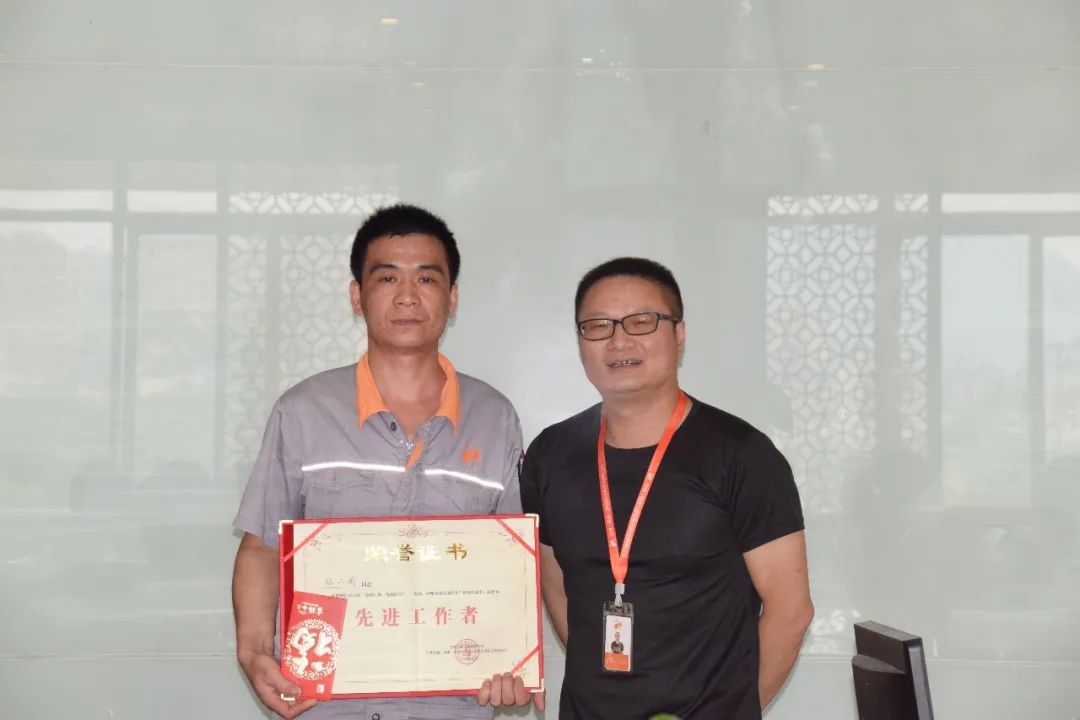 5月29日上午,金强建材综合管理部总监廖发根为获奖者颁发荣誉证书及奖金。