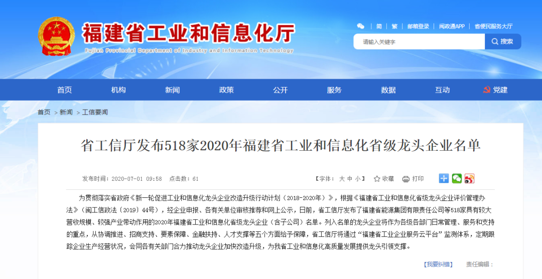 据了解,此次被列入名单的龙头企业将成为政府各级各部门日常管理、服务和支持的重点,从协调推进、招商支持、要素保障、金融扶持、人才支撑等五个方面获得政府给予的支持与保障,省工信厅将通过“福建省工业企业服务云平台”监测体系,定期跟踪企业生产经营状况,会同各有关部门合力推动龙头企业加快改造升级,为福建省工业和信息化高质量发展提供龙头引领支撑。