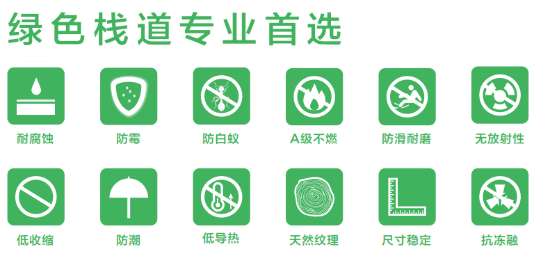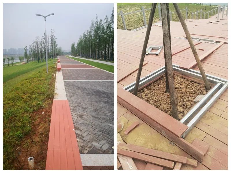 新建的亲水平台和景观广场均毗邻河流,周围环境湿度较高,而金强TKK栈道板使用纤维硅酸盐增强材质制作而成,具有较高的防潮、防霉的性能,可在高湿度环境中使用。