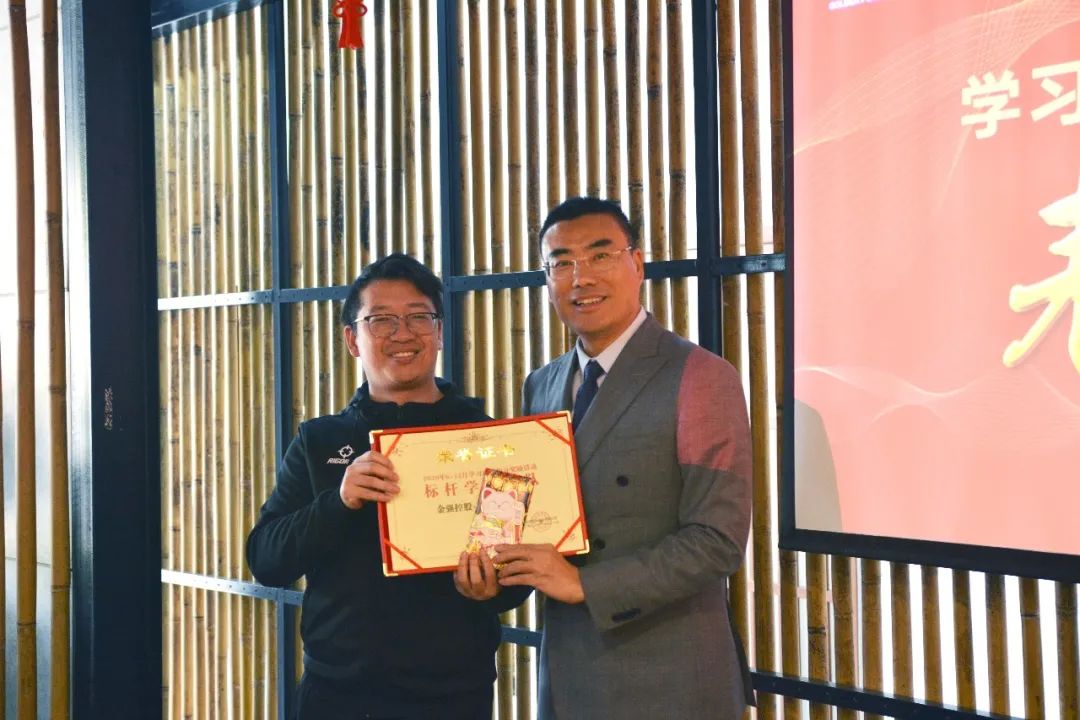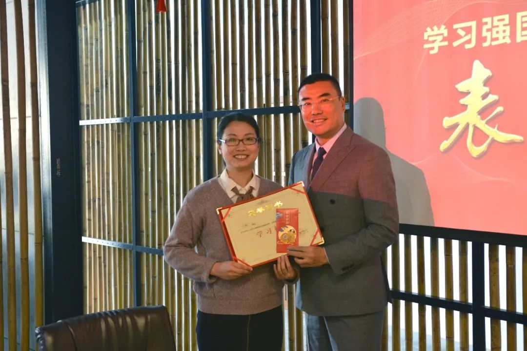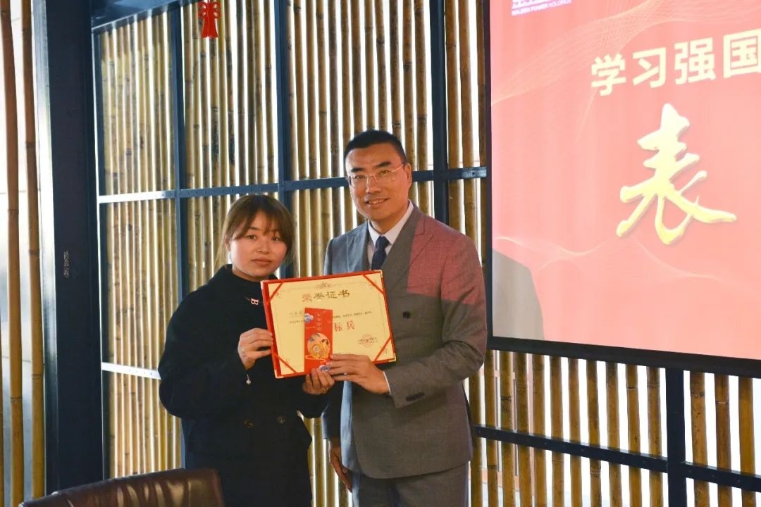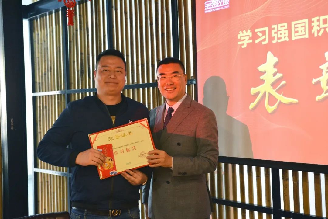 经过7个月的学习PK,学员共累计学习积分219352,兑换礼品251件。根据积分统计,十位排名靠前的学员荣获“学习标兵”称号;结合参与度、人均积分、总积分排名情况,三个中心荣获“标杆学习团队”称号。1月28日下午,金强控股集团召开“学习强国积分奖励活动表彰会”,为所有获奖人员及团队进行表彰。金强控股集团总裁翁斌担任本次表彰会颁奖嘉宾。