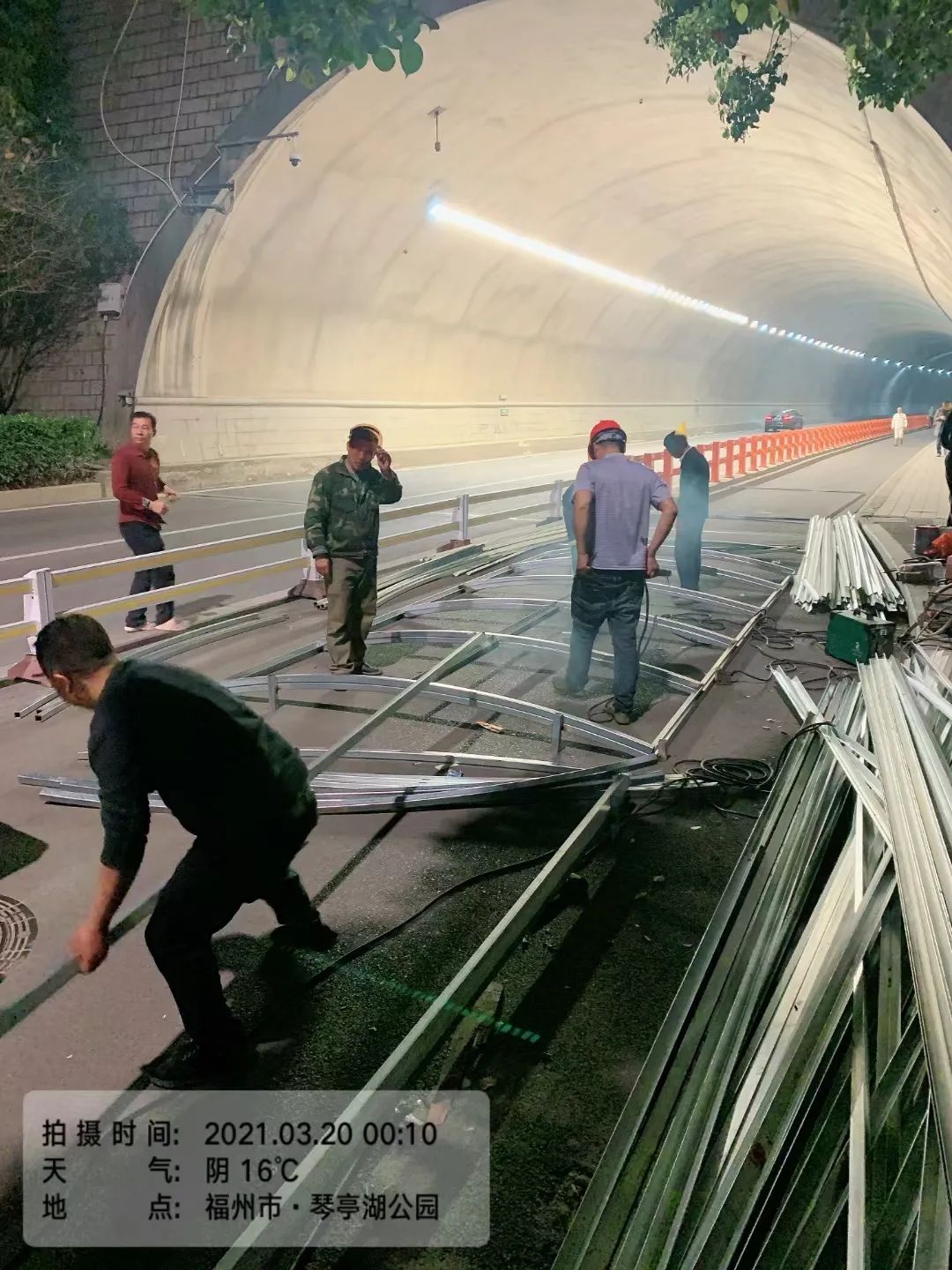 福州罗汉山隧道辅洞位于福州北三环路,邻近琴亭湖公园,该隧道辅洞墙面原为未经过装饰的清水混凝土墙面,看上去风格较为单一,缺乏生气。为了提升该隧道辅洞的墙面景观,同时为了最大限度地减少对市民交通出行的影响,该项目工期计划仅为2天!