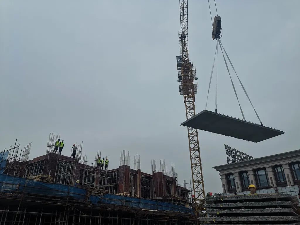 B地块8栋总建筑面积为69910.57㎡,D地块12栋总建筑面积为75022.20㎡,E地块内共24栋总建筑面积为86611.0㎡,G地块15栋总建筑面积为63929.77㎡,四个地块中共有25栋装配式建筑,采用金强叠合板、楼梯、挑板等预制构件。