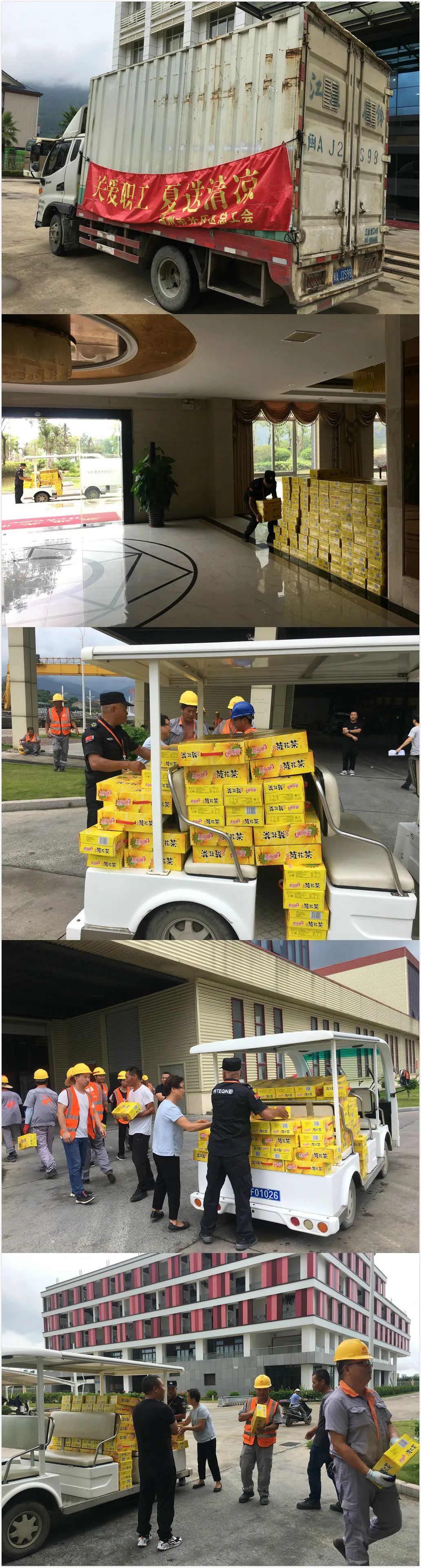 一句句嘱咐是关怀,一箱箱凉茶是情谊。员工们收到凉茶,一个个心里乐开了花,脸上露出了灿烂的笑容,纷纷感谢长乐区总工会和公司领导的关怀,并表示一定会坚守岗位,积极工作。
