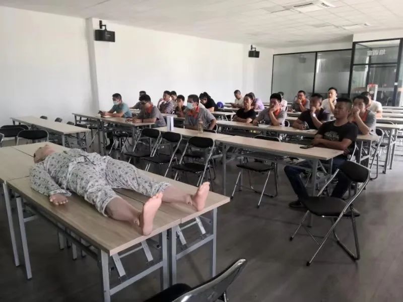 课上,讲授了心肺复苏术、意外伤害及创伤救护等相关理论知识,重点强调了实际救助过程中需要注意的问题和经常出现的错误,并利用教具对职工开展心肺复苏、意外伤害和创伤救护的演练教学。