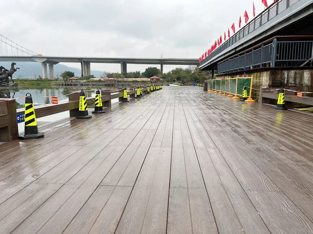金强TKK栈道板因其优越的防水、防霉特性,可应用于湖水环绕的高湿度环境中,相较于防腐木等具有更长的使用寿命。