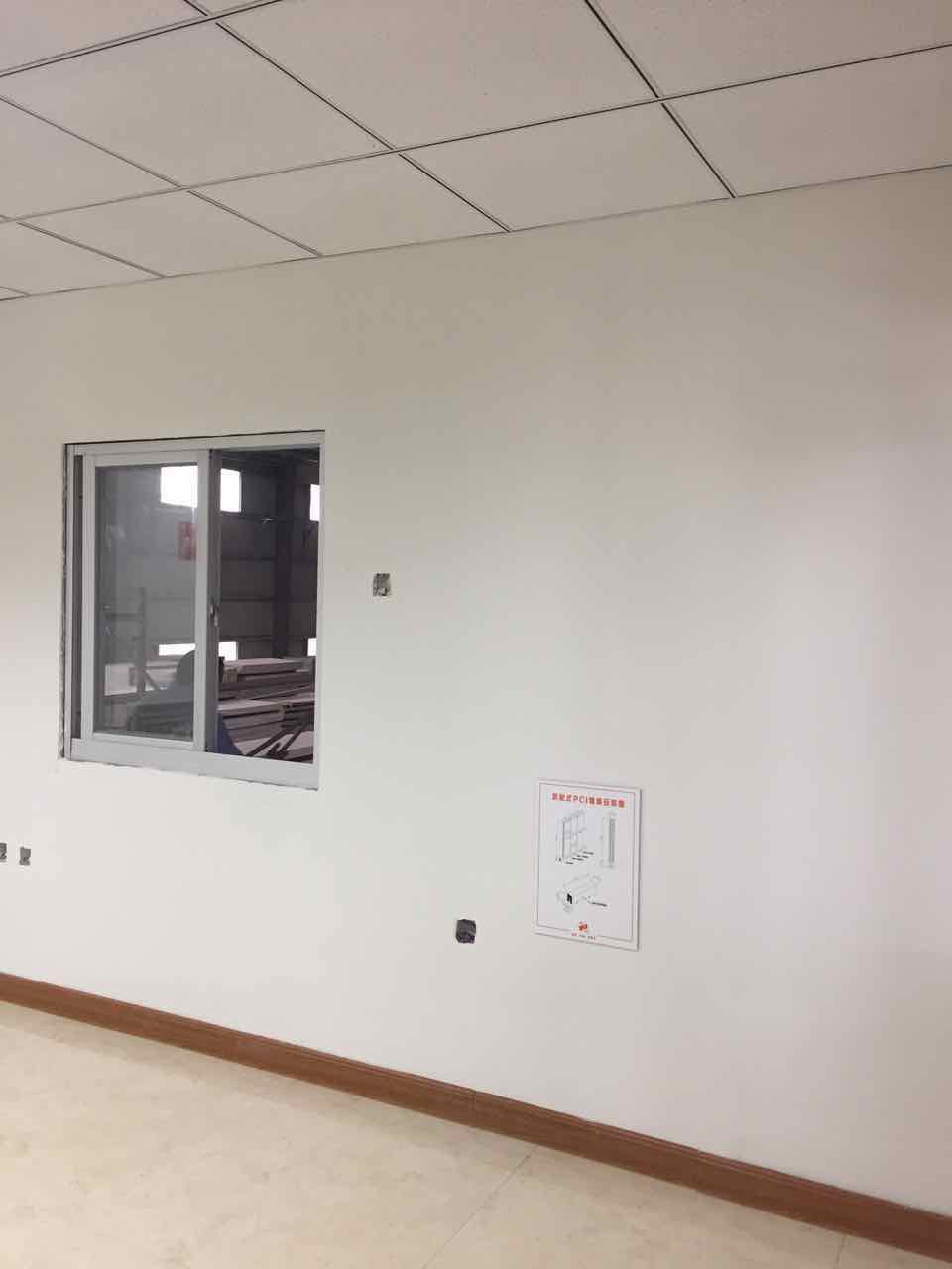 示范楼内墙全部采用金强装配内隔墙装饰一体化墙板体系。该体系在传统的轻质复合条板的基础上在工厂生产时进行管线预埋,现场安装及干法饰面的安装体系,实现节材、节省人工和现场建筑垃圾零排放。