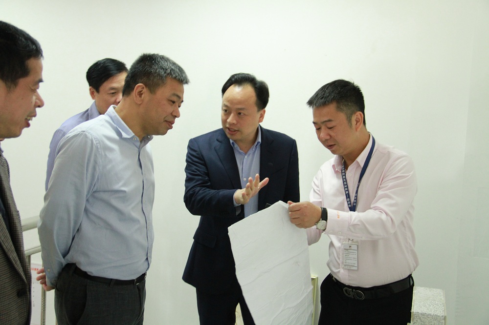 4月14日,福建省建设厅副厅长林增忠在福州市建委副主任郑鸿、产业办、省造价、省质检站、省建科院、省建筑设计研究院等专家领导一行陪同下莅临金强新材料园区调研。金强控股董事长刘金铃及金强建材科技总经理黎忠和等多位金强高管陪同参观调研。