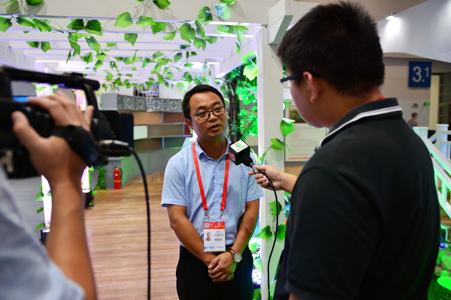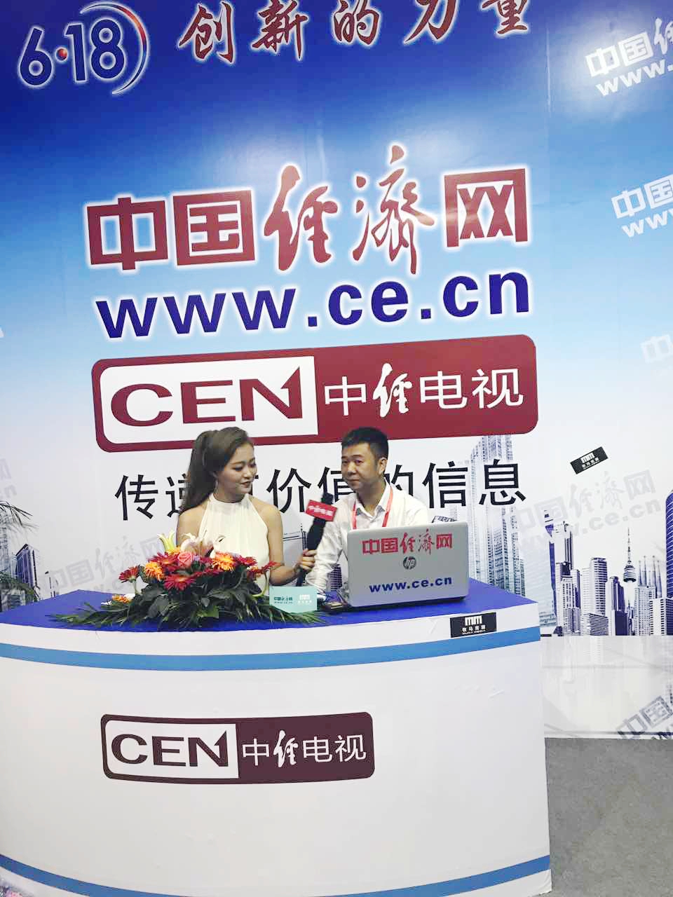 展会期间,金强展区设计采用农家院落式的建筑形式,其以绿色的装扮,清新的田园风格吸引了许多观众拍照留念,并受到多家媒体关注报道。6月18日上午,金强(建材)科技股份有限公司总经理黎忠和在“6•18”展会的中国经济网演播室接受采访。