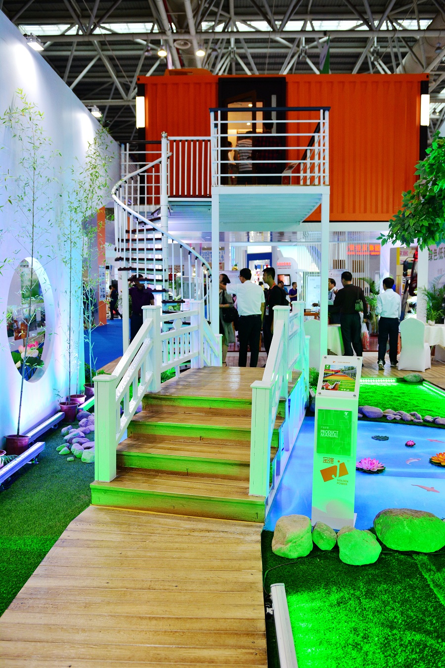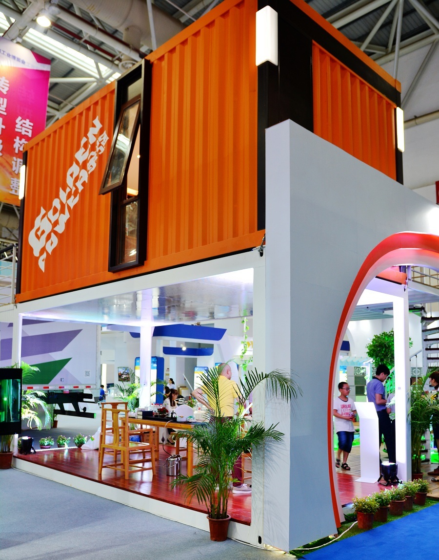 本次展出的金强模块化建筑展厅主要展出两大块主要内容:一为以钢结构为主体的集装箱住宅,二是绿色环保板材。