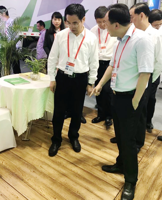 6月19日上午,福建省常委副省长周联清、省经信委主任翁玉耀等省、市领导莅临金强展区参观指导。集团董事长刘金铃陪同参观,并为他们介绍了金强集装箱模块化建筑与金强TKK板材。
