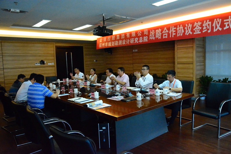 金强控股集团投资顾问潘建国、董事长刘金铃、总裁翁斌、运营中心总监陈江红、金强建材总经理黎忠和等一行前往福州市规划勘测设计研究总院,与福州市规划院高学珑院长、桂兴刚书记、陈硕副院长、唐丽虹副院长、陈友荣副院长、总工办主任李玉华、夏昌院副总工等专家会谈,共同见证双方战略合作协议签约。福州市规划设计研究院交通规划研究所、建筑设计所、园林景观所、项目管理中心、市政设计所、公路所、办公室、经营发展部、生产管理部、城市研究中心等负责人及相关技术人员均出席签约仪式。