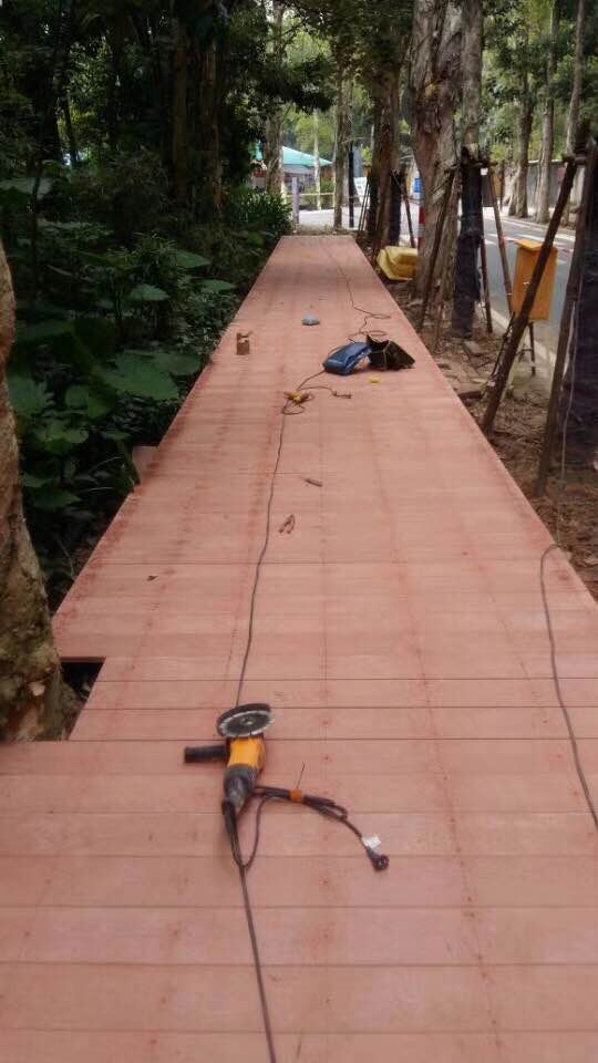 福州国家森林公园迎宾大道(东大门-假日宾馆)原有栈道年久失修,较为陈旧,与整体景区的美观不符。所以,福州国家森林公园迎宾大道(东大门-假日宾馆)慢道工程项目对原有栈道进行重新设计并采用金强红色通体TKK栈道板进行施工。