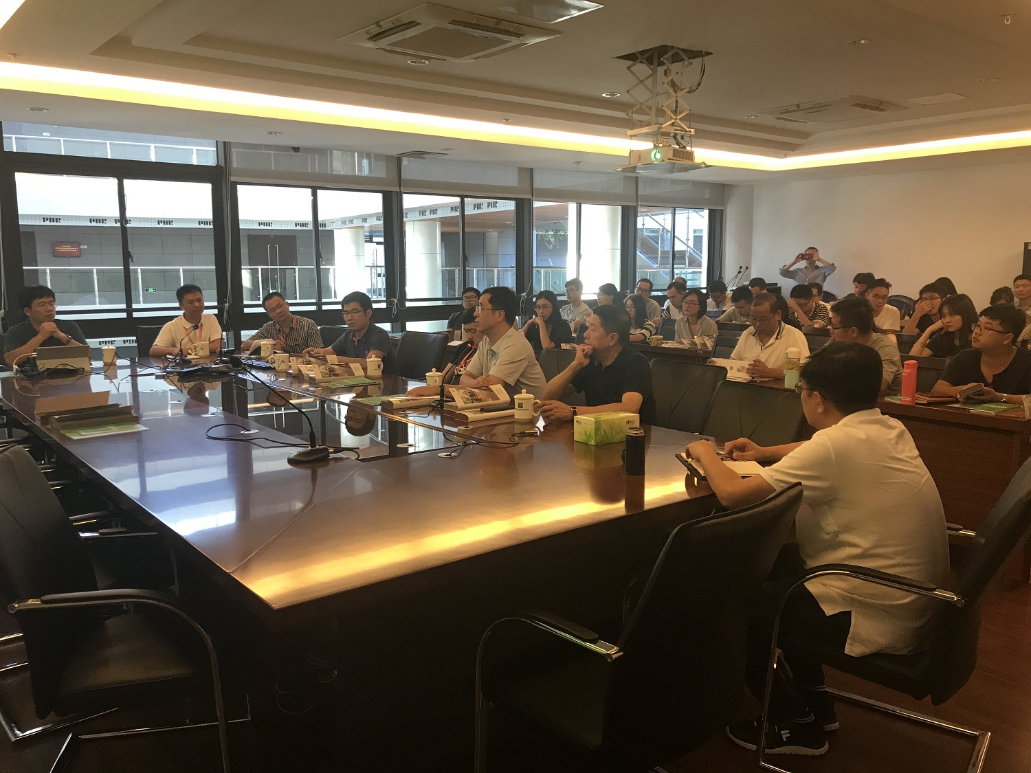 在技术交流会上,双方就新型TKK栈道板的产品特性以及技术应用展开热烈讨论,其中不乏对TKK栈道板较为熟悉的设计师,曾在长乐南山公园项目中运用金强TKK栈道板,在交流会上表达了对TKK板的肯定,并结合实际提出专业性问题,与金强技术人员从原材料、生产工艺、安装技术、板材价格及实际运用等多方面进行技术交流、深入探讨。