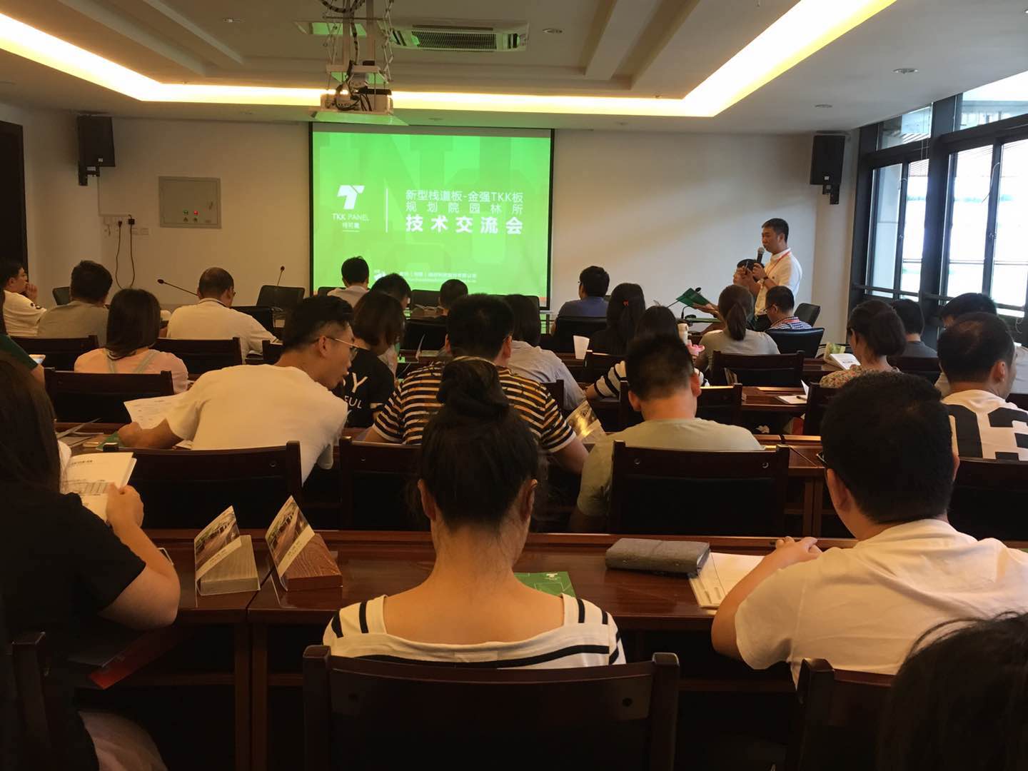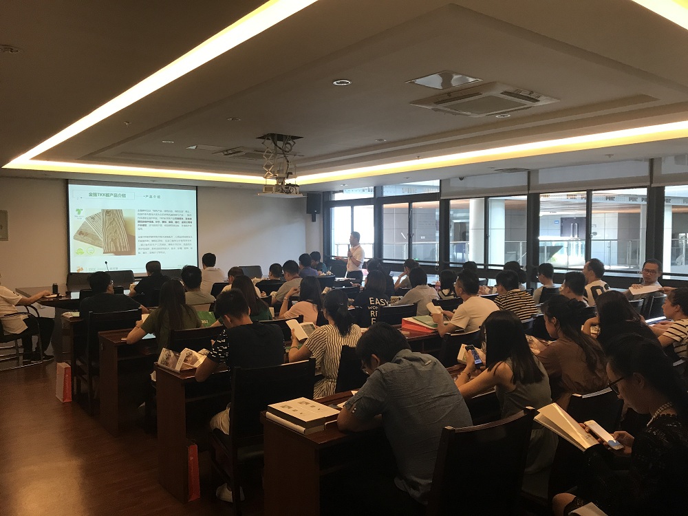 而新型TKK栈道板则完全可以帮助解决目前园林景观设计中所遇到的问题。在交流会上,金强建材总经理黎忠和从原材料、生产工艺、安装技术等多方面对金强TKK板进行技术讲解。