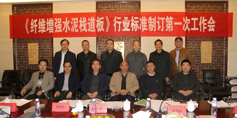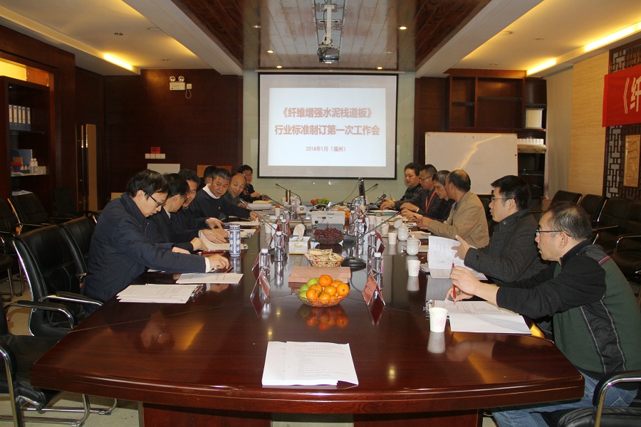 根据工业和信息化部工信厅科函 [2017]106号“关于印发2017年第三批行业标准制修订计划的通知”下达了《纤维增强水泥栈道板》行业标准的制订任务(计划编号:2017-1275T-JC)。2018年1月6日,《纤维增强水泥栈道板》行业标准制定第一次工作会在福建省福州市召开。由工信部指定苏州混凝土水泥制品研究院有限公司和金强(福建)建材科技股份有限公司为主编单位。这次前来参编的单位还有福州市规划设计研究院、福建工程学院、中恒(福建)城镇建设开发有限公司、福州市欧文森建材有限公司等单位。