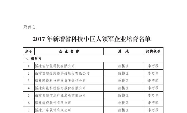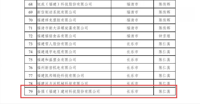 日前,福建省科技厅发布《关于公布2017年省科技小巨人领军企业新增培育名单等情况的通知》,金强(福建)建材科技股份有限公司榜上有名。