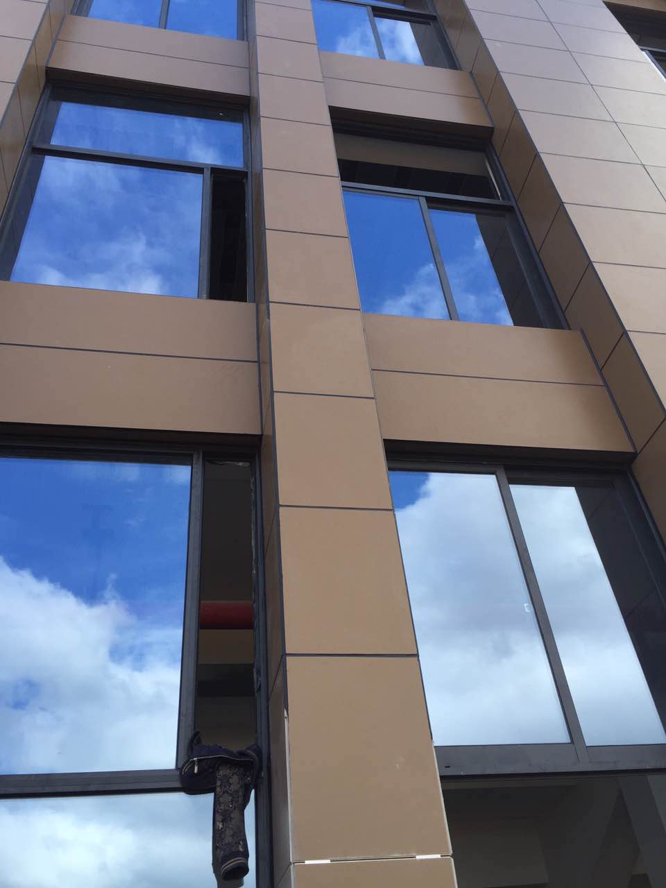 此外,由于金强ETT板表面涂层均匀分布SIO2粒子,具有超强的亲水性,使水珠产生荷叶效果,使得大气硫化物,污迹不易粘牢,仅悬浮于表面,遇到雨天则将被冲洗干净,自洁功能强大。