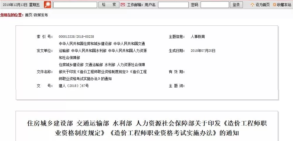 住房和城乡建设部、交通运输部、水利部、人力资源社会保障部于2018年印发《造价工程师职业资格制度规定》《造价工程师职业资格考试办法》的通知。明确:造价工程师分为一级造价工程师和二级造价工程师。
