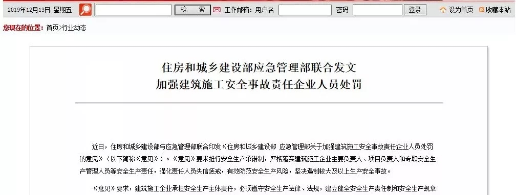 11月20日、住房和城乡建设部和应急管理部发布关于加强建筑施工安全事故责任企业人员处罚的意见。