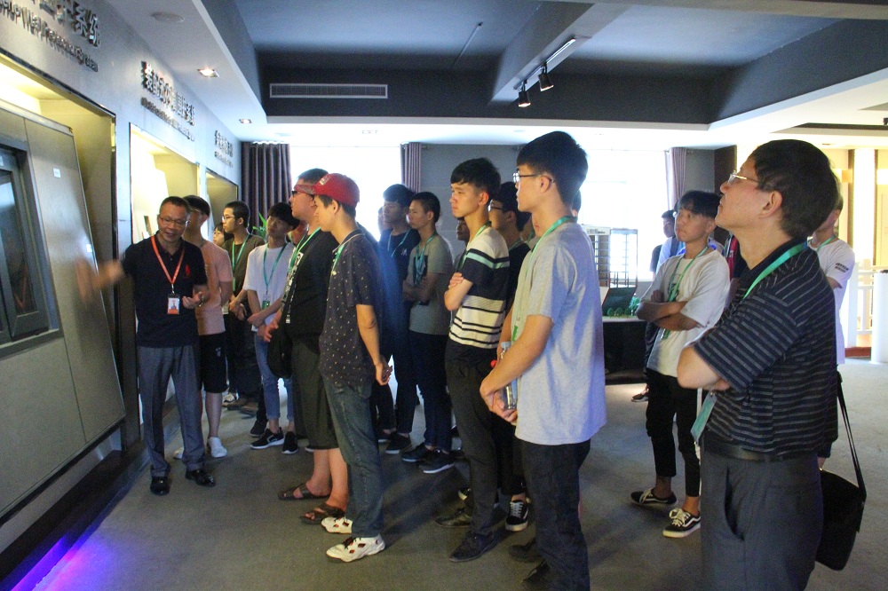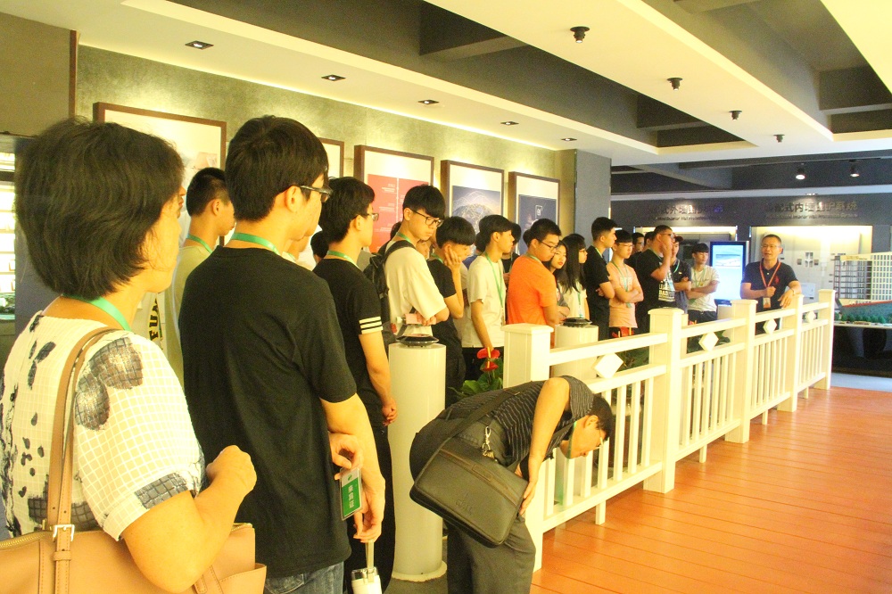 同学们在金强建材总经理助理兼技术中心总监朱晓阳的详细解说下,了解金强装配建筑产业园的整体规模、产业布局,以及金强绿色板材、金强装配式部品部件和金强装配式钢结构技术体系的特点和优势。