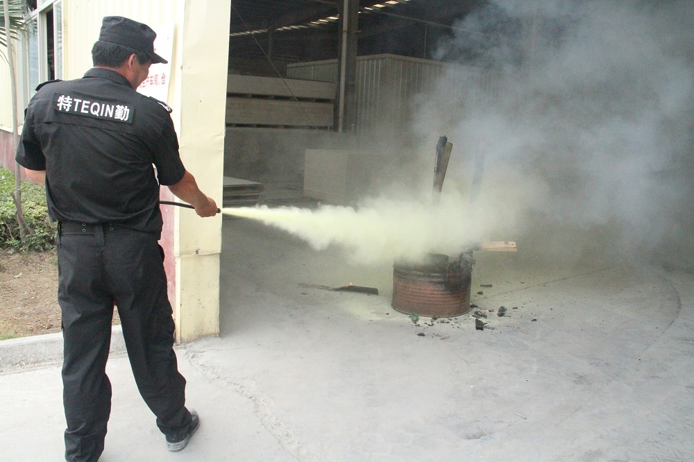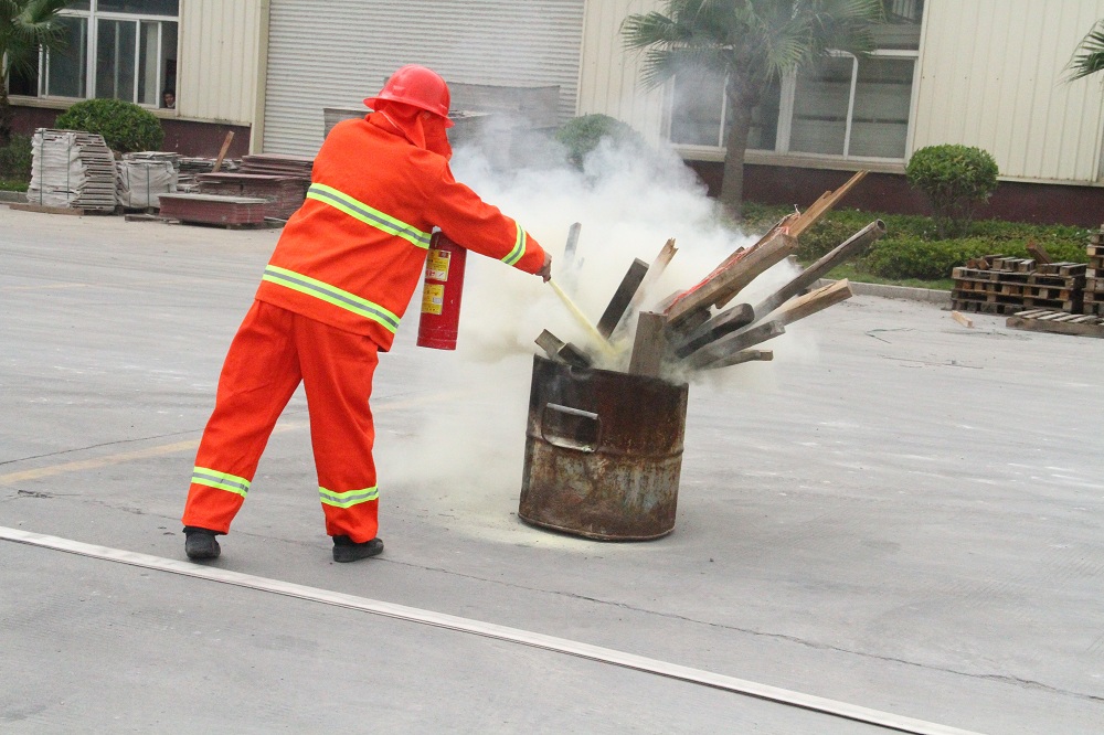 本次演练共有四大方面内容:1、火情报警注意事项; 2、连接室外消防给水灭火;3、车间遇到火灾事故的疏散演练;4、灭火器扑灭初期火灾。在正式演练前,公司安全员及安保人员首先讲解示范了灭火器、消防栓、高压水带等灭火器具的使用技巧。