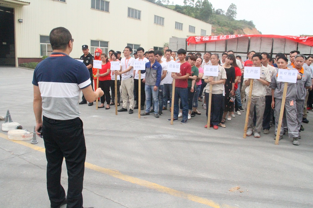 为了提高公司员工消防应急能力,全力、及时、迅速、高效地控制火灾事故,增强员工预防突发事故的消防意识,避免由于突发事故造成混乱局面,保障公司财产和员工的生命安全,最大限度的减少火灾事故损失,2018年6月4日,金强建材组织开展火灾事故救援演练。金强建材消防安全救援小组包含保安队、生产中心车间全体人员、医护人员、综合管理部人员等参与此次演练。