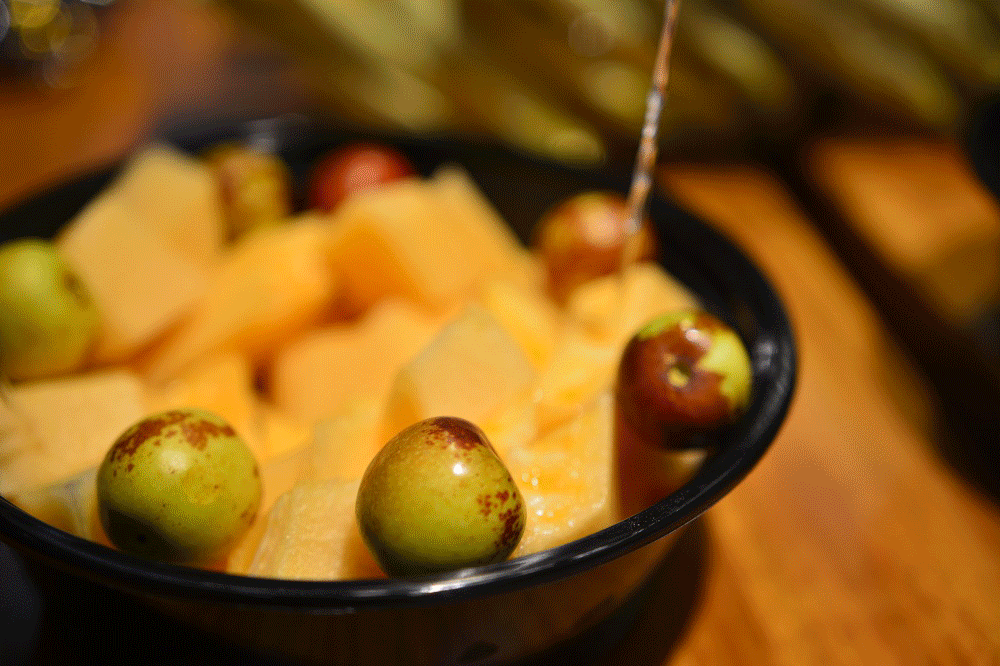 右手一块水果