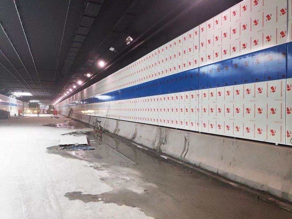 北翟路(外环线—中环线)新建工程在隧道侧墙采用了金强ETT板,目前板材安装工作已经进入最后阶段。