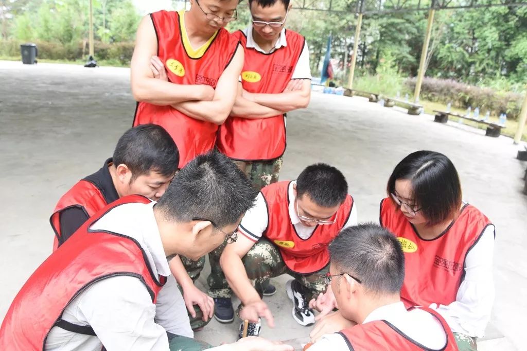 在拓展训练中,增强团队凝聚力的训练目标也是活动的重中之重。在每一期的拓展训练中,都进行了红队、绿队、蓝队的分组并组建战队。不仅在每个项目中都设计了团队协作的环节,在游戏中通过团队的共同商讨,完成任务,为团队争夺荣誉。更专门设置了“沙场点兵、极速破译、旗语先锋、扬帆起航”等以团队合作为主要环节的,体现团队凝聚力的训练项目。