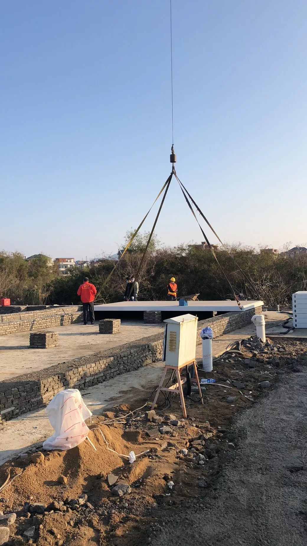 当晚,现场已经完成多个模块化房屋的骨架安装。