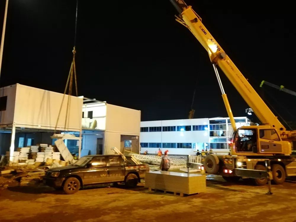 在整个项目中,完成设计工作和产品到位后,真正留给模块化房屋安装建设的时间仅剩4天,任务异常艰巨!金强控股集团和其他建设单位的全体参建人员已经连续多日加班加点,齐心协力为项目的早日建成日夜奋战,咬紧牙关,共克时艰!