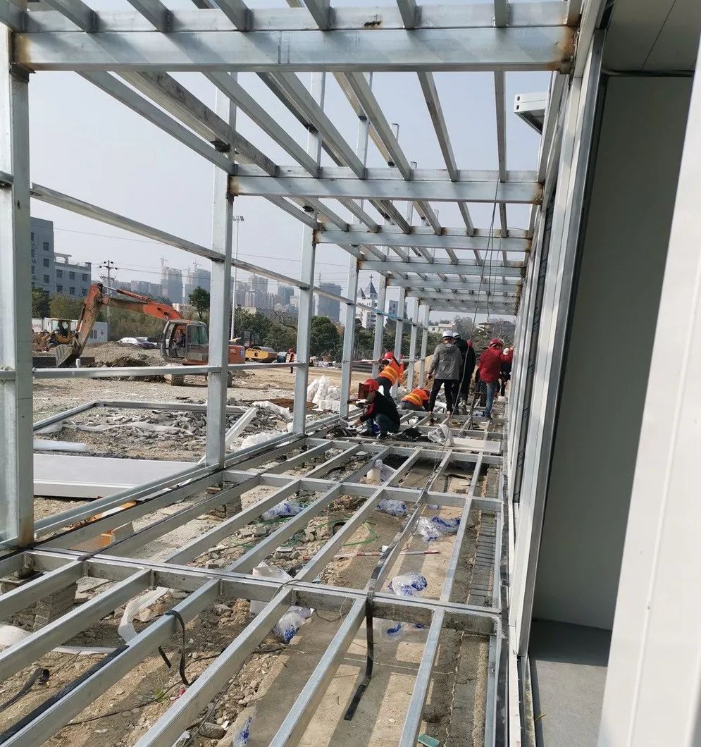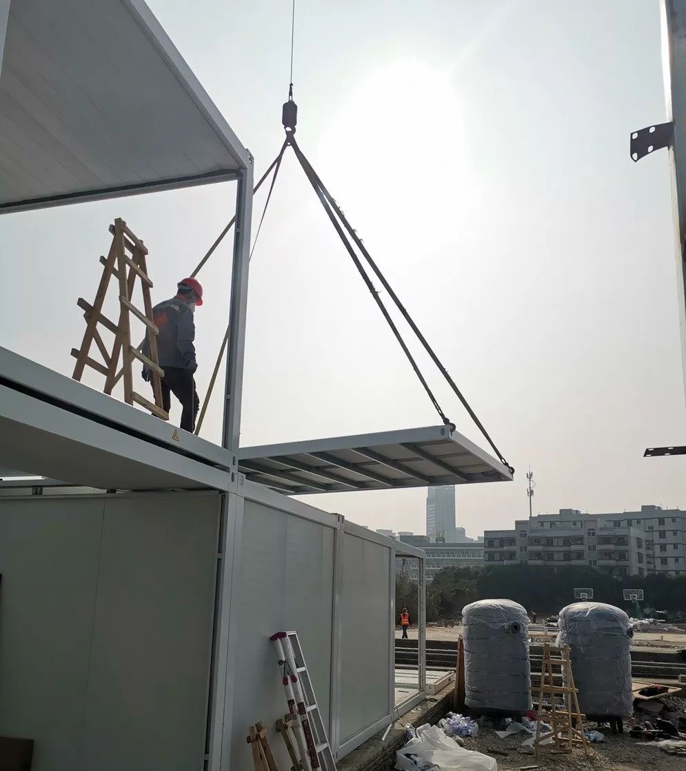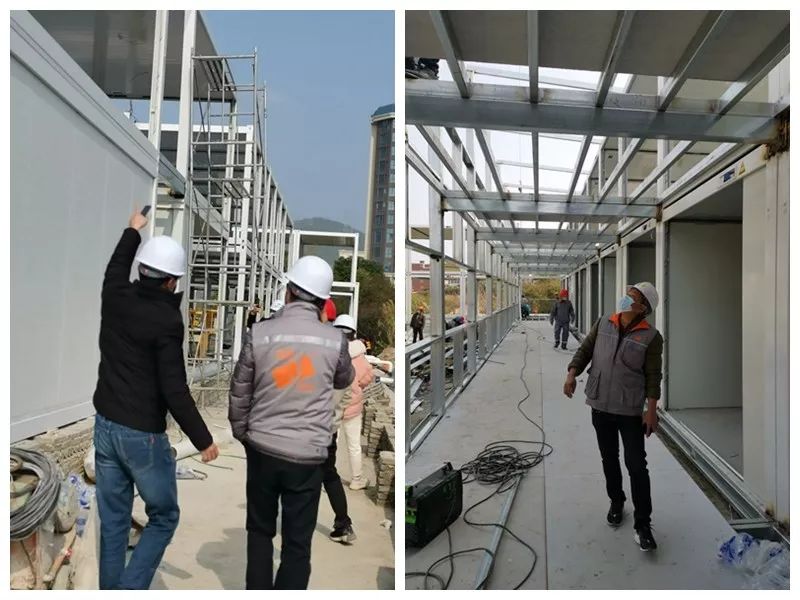 该项目是采用装配式模块化建设的。早在1月26日,接到任务的初期,金强控股集团项目建设团队和其他参建单位进行商讨,便决定该项目必须采用目前国内建设速度最快的装配式模块化房屋建设。金强模块化房屋是通过是将传统房屋以单个房间或一定的三维建筑空间为建筑模块单元进行划分,每个单元都在工厂内完成预制,再通过将单元运输到工地进行装配连接的一种新型建筑。具有部品部件质量高、可干法施工,现场可多工种交叉作业,与传统建造方式相比,可大大缩短工期。